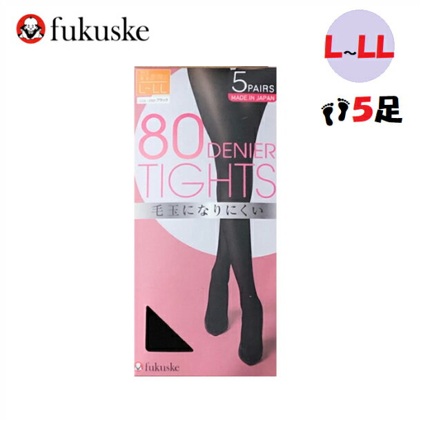 【即納品】【5足セット】fukuske 福助 日本製 80デニール タイツ 5足組 ブラック 黒 L-LLサイズ 毛玉になりにくい