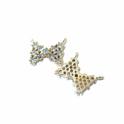 クリスタルストーン埋め込みリボンチャーム メール便対応 ハンドメイドパーツ ビーズ ピアス ビンテージ/ヴィンテージ風