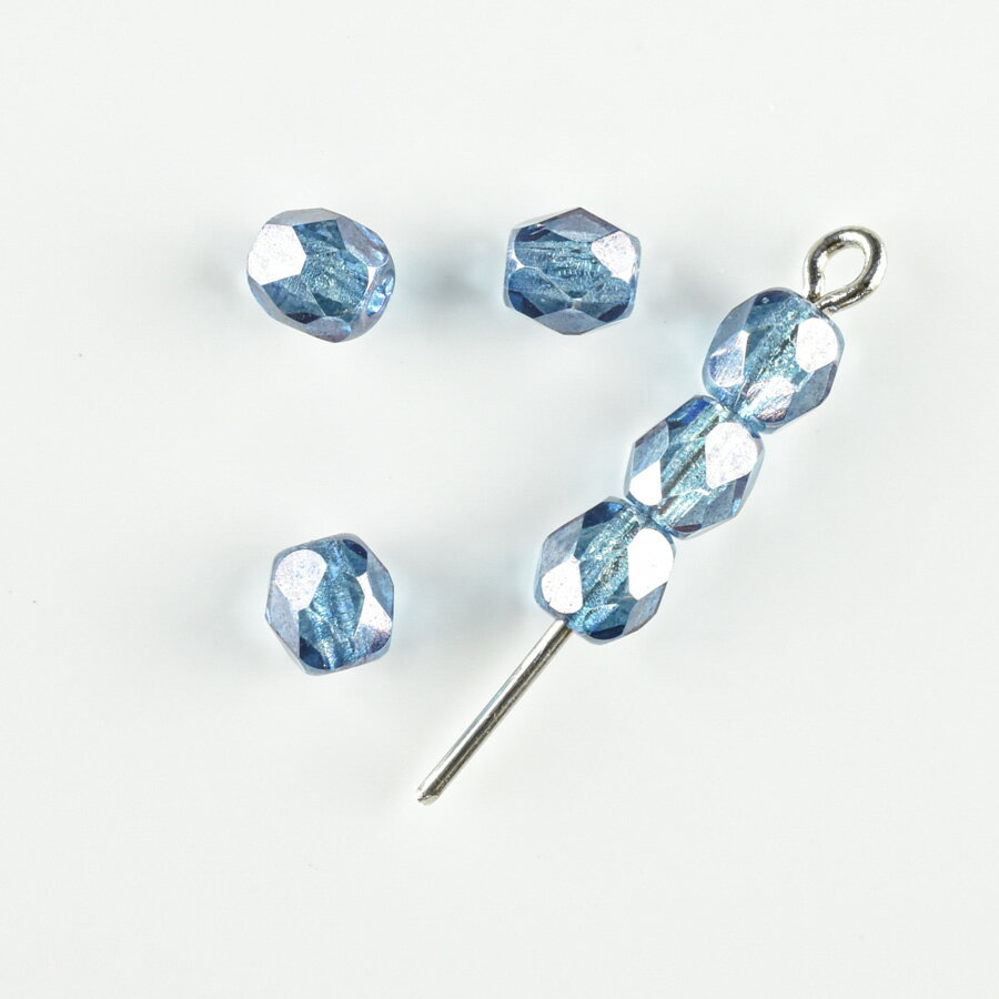 【今だけポイント20倍】【まとめ買い割引】【200個】チェコビーズ ファイアポリッシュ ガラスビーズ/ファイアポリッシュ /クリスタルブルーラスター 透明系 クリア/約4mm/パーツ アクセサリー ハンドメイド 手芸 材料