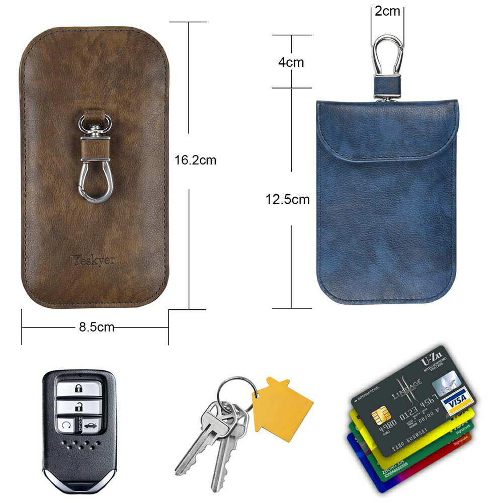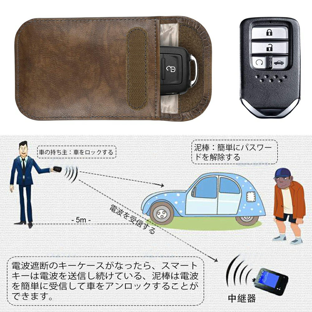 リレー アタック キー ケース スマートキー 電波遮断ポーチ 2個セット PUレザー ポーチ 防水性 耐久性 カードケース 耐摩擦 完全遮断 防犯対策 スキミング防止 カーセキュリティ 軽量 クレジットカード デビットカード ドアカード キーリング付き