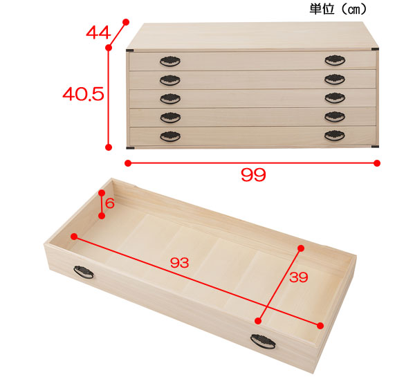 ■商品について たとう紙を折らずに収納できる幅広の桐上置き用チェスト。