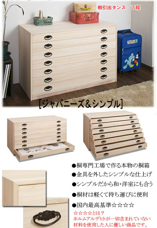[桐引出しタンス] 桐引出しタンス3段 桐引出しタンス5段 桐引出しタンス7段 桐引出しタンス6段 桐引出しタンス10段 桐上置き4杯 桐引出しタンス7段 hi-rh0003 調湿機能に優れた桐材は、衣類の収納に最適! 着物やカシミヤなど、大切な衣類の保管にはやっぱり桐。