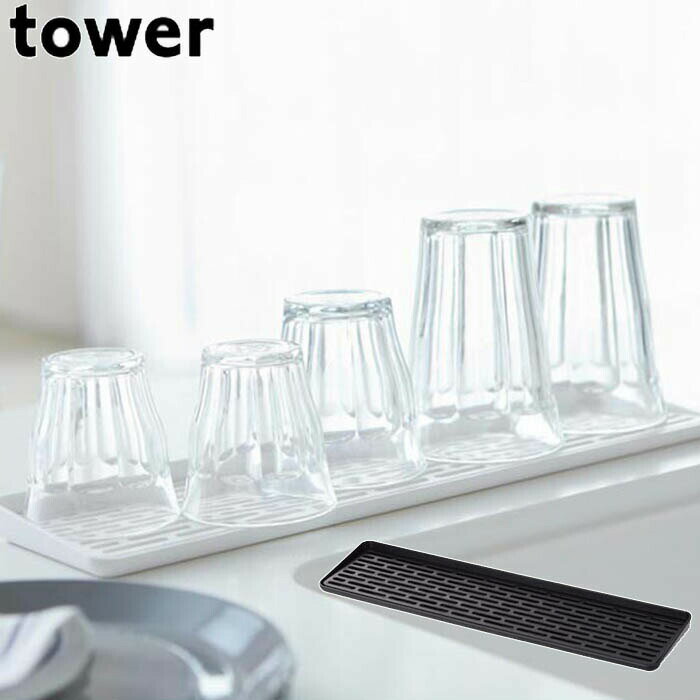 TOWER タワー 水切り コップ プレート マット 水切りマット 水切りプレート コップ立て グラススタンド グラス置き コップ置き おしゃれ ホワイト ブラック 山崎実業 タワーシリーズ yamazaki 北欧 キッチン 雑貨 ホテル 備品 ホテルスタイル ヤマジツ