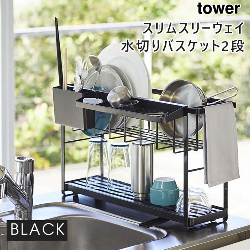 tower タワー スリムスリーウェイ水切りワイヤーバスケット 2段 ブラック 5071 かご ラック シンク 水切りトレー YAMAZAKI (山崎実業) 05071-5R2★