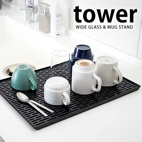 水切りトレー 水切りマット グラス マグスタンド ワイド タワー tower キッチン用品 水切り グラススタンド マグスタンド 水きり